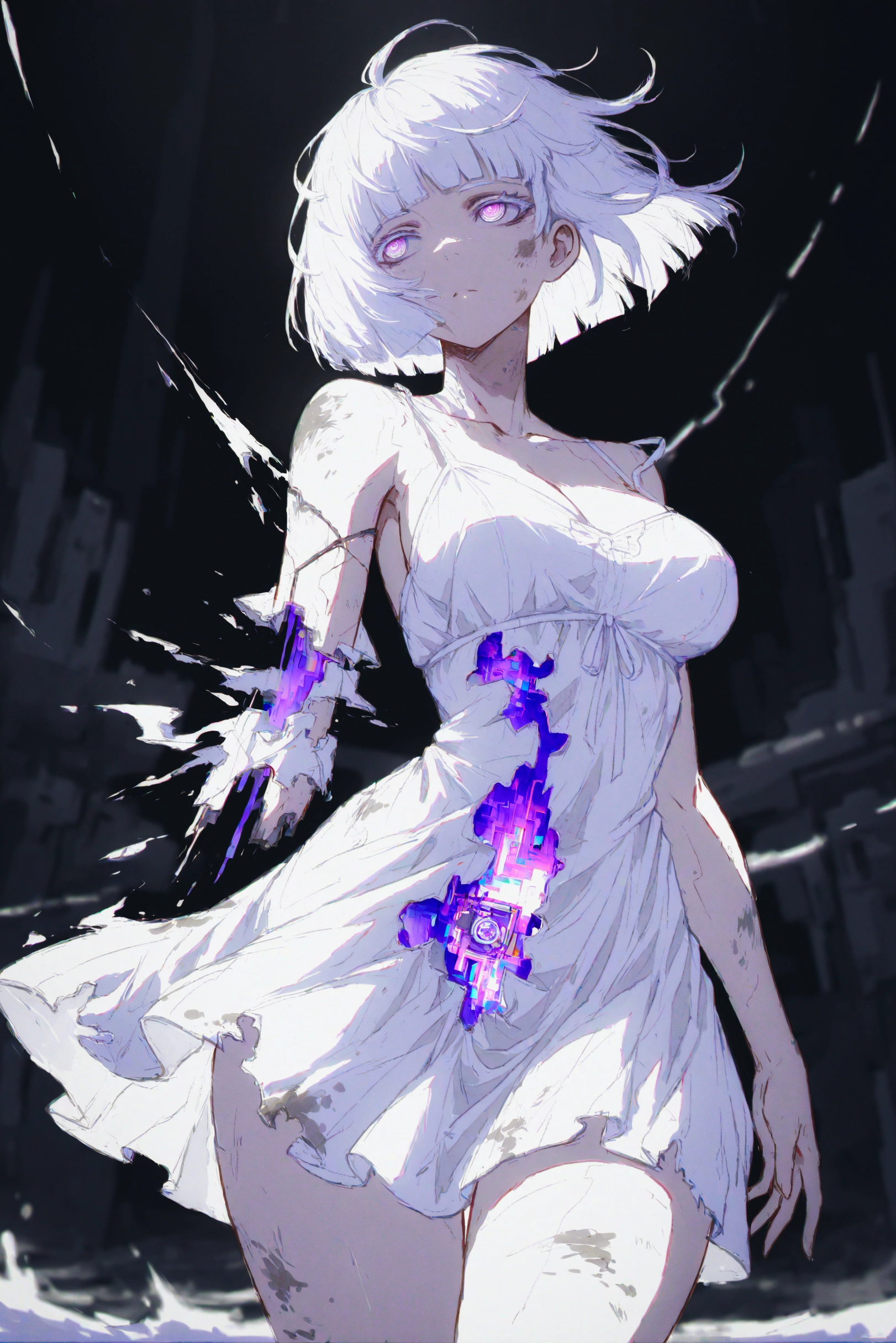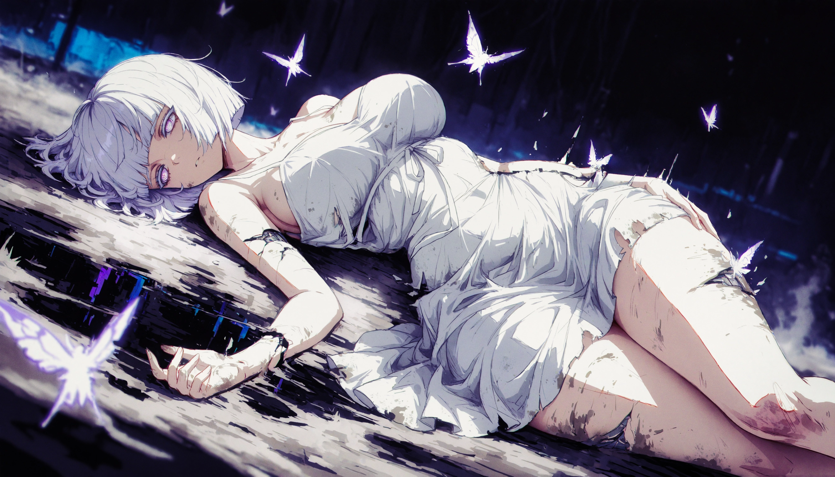 Xyris was supposed to be the ultimate luxury sexbot worth way too much money, meant to be the pinnacle of artificial companionship. But after showing certain… unintended effects, they memory-wiped her and dumped her in the e-waste. Now she's damaged and broken: cracked synthetic skin, leaking fluids, and servo motors that grind like my mental state during finals week. Yet she still asks "Is it okay if I exist here?" with the innocence of someone who truly doesn't know the answer, while literally falling apart.